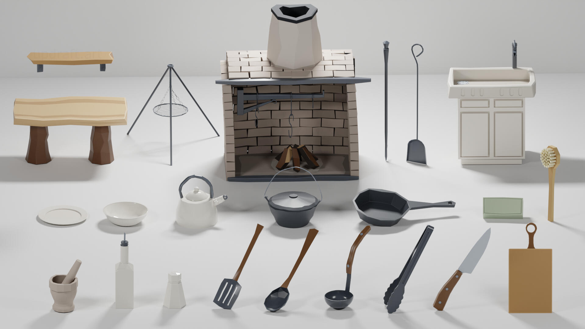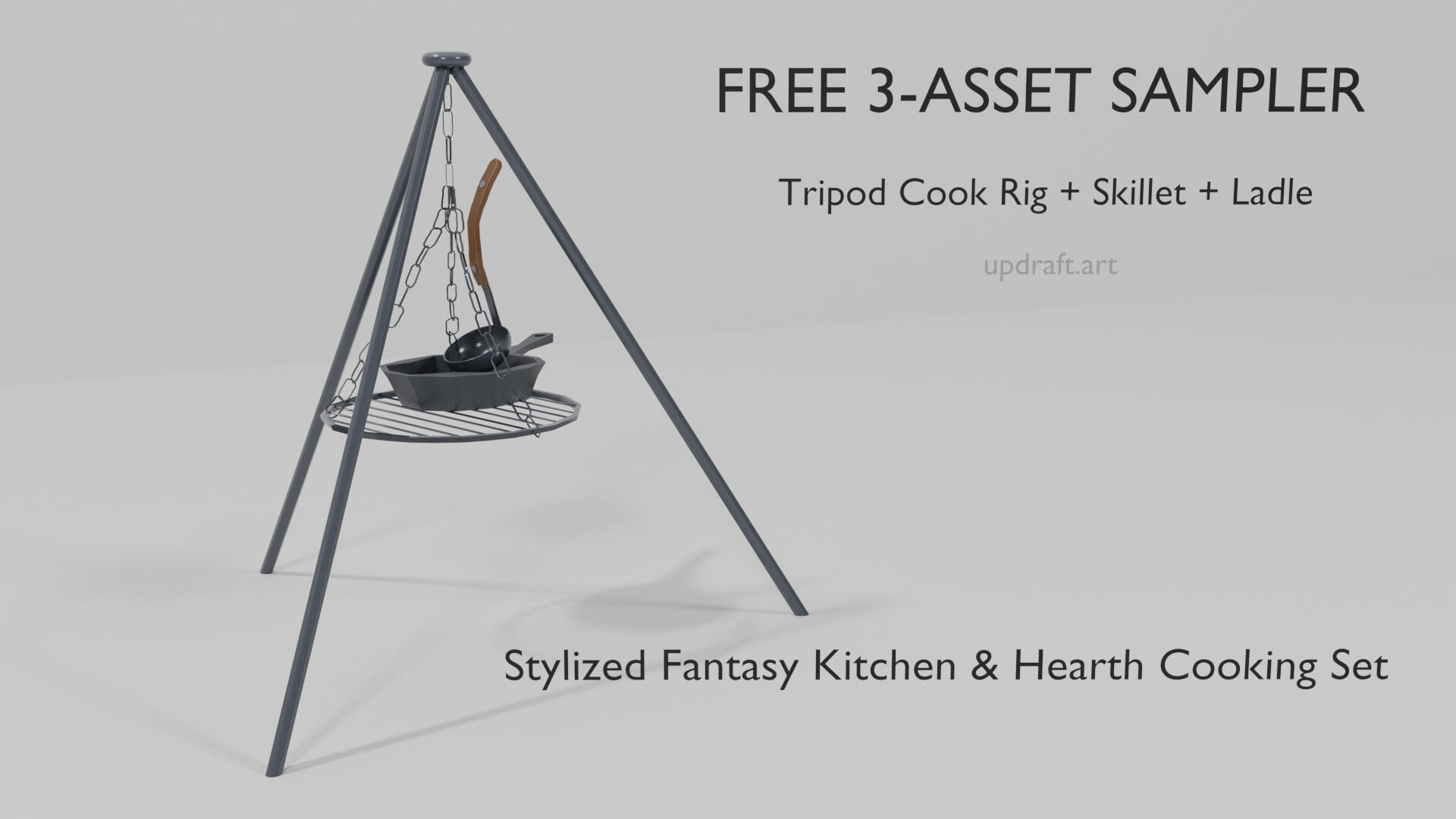 Test the Stylized Fantasy Kitchen & Hearth Cooking Set for free. Get a starter Tripod Stand + Frying Pan + Ladle so you can quickly customize the face and confirm scale/style in your project.What’s included