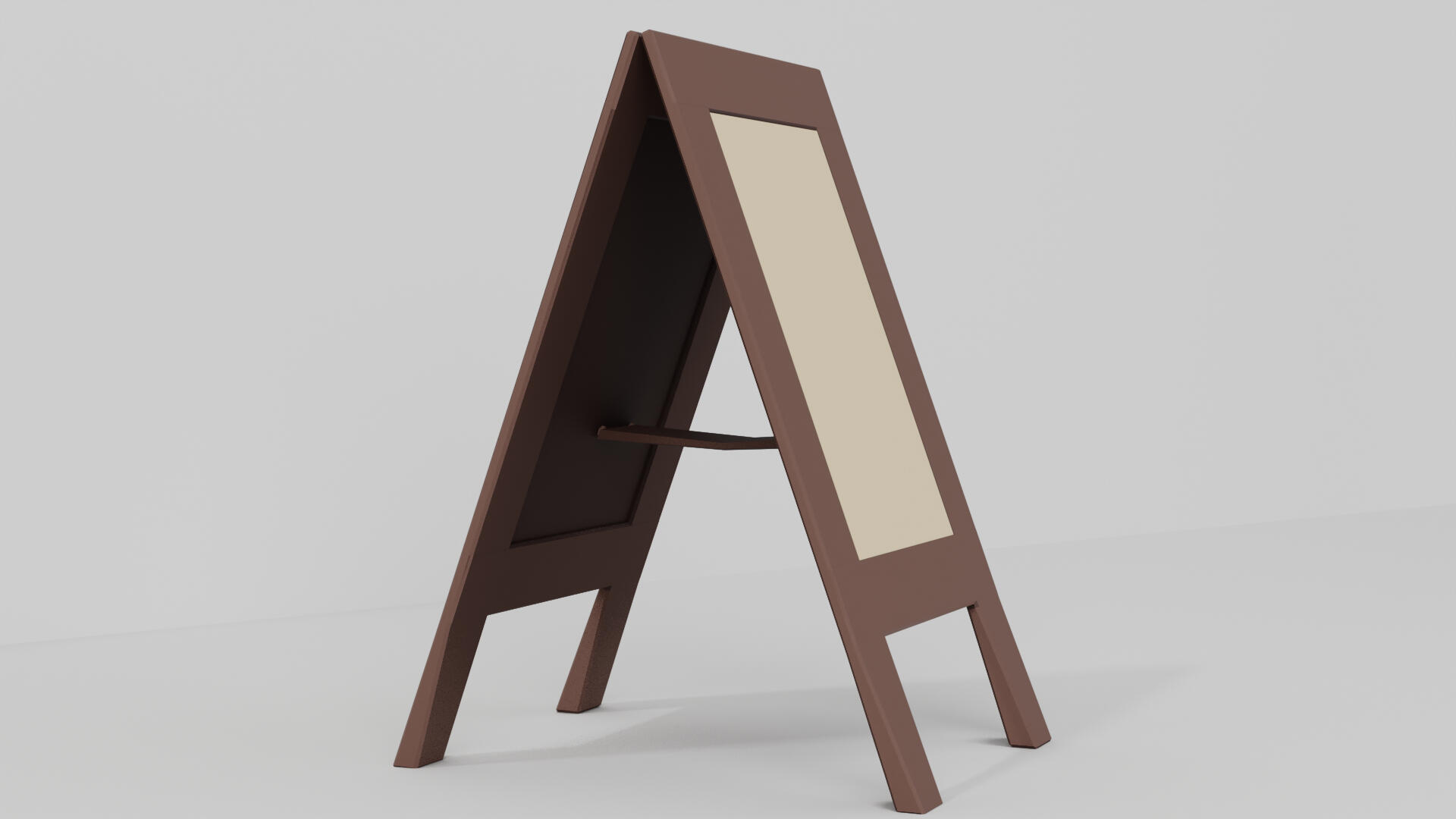 A free A-frame sign + blank insert planes so you can test scale/style and customize signage fast.