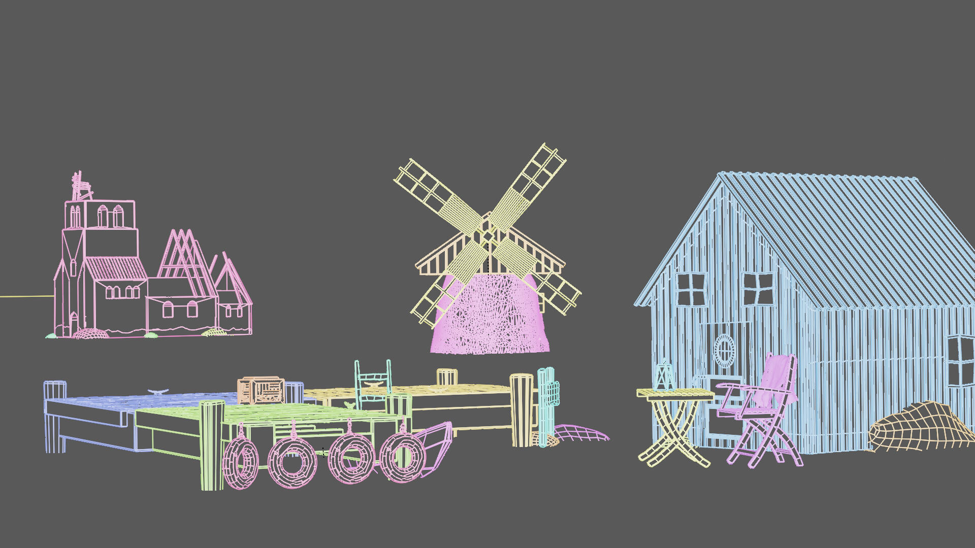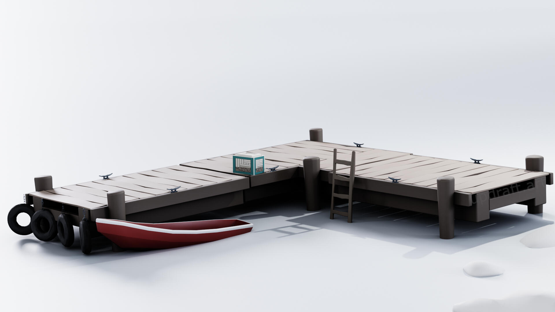 A stylized modular dock + coastal buildings pack with props and looping animations for lively scenes.