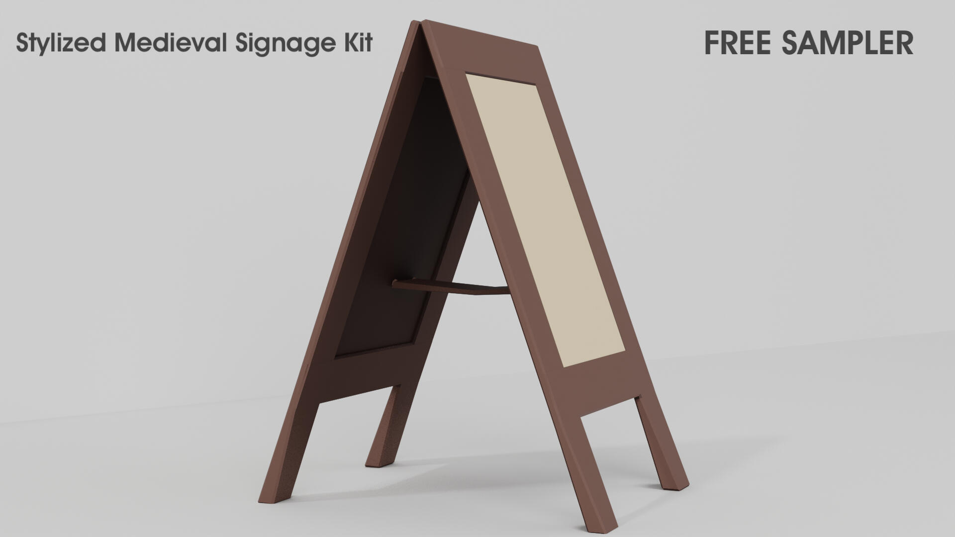 Test the Stylized Signage Kit for free. Get a starter A-Frame sign plus insert planes (blank + variants) so you can quickly customize the face and confirm scale/style in your project.What’s included