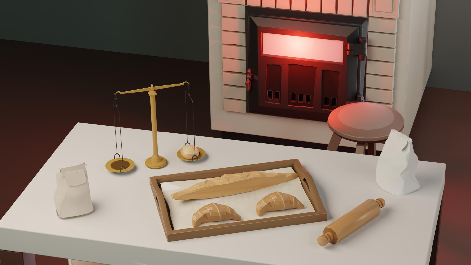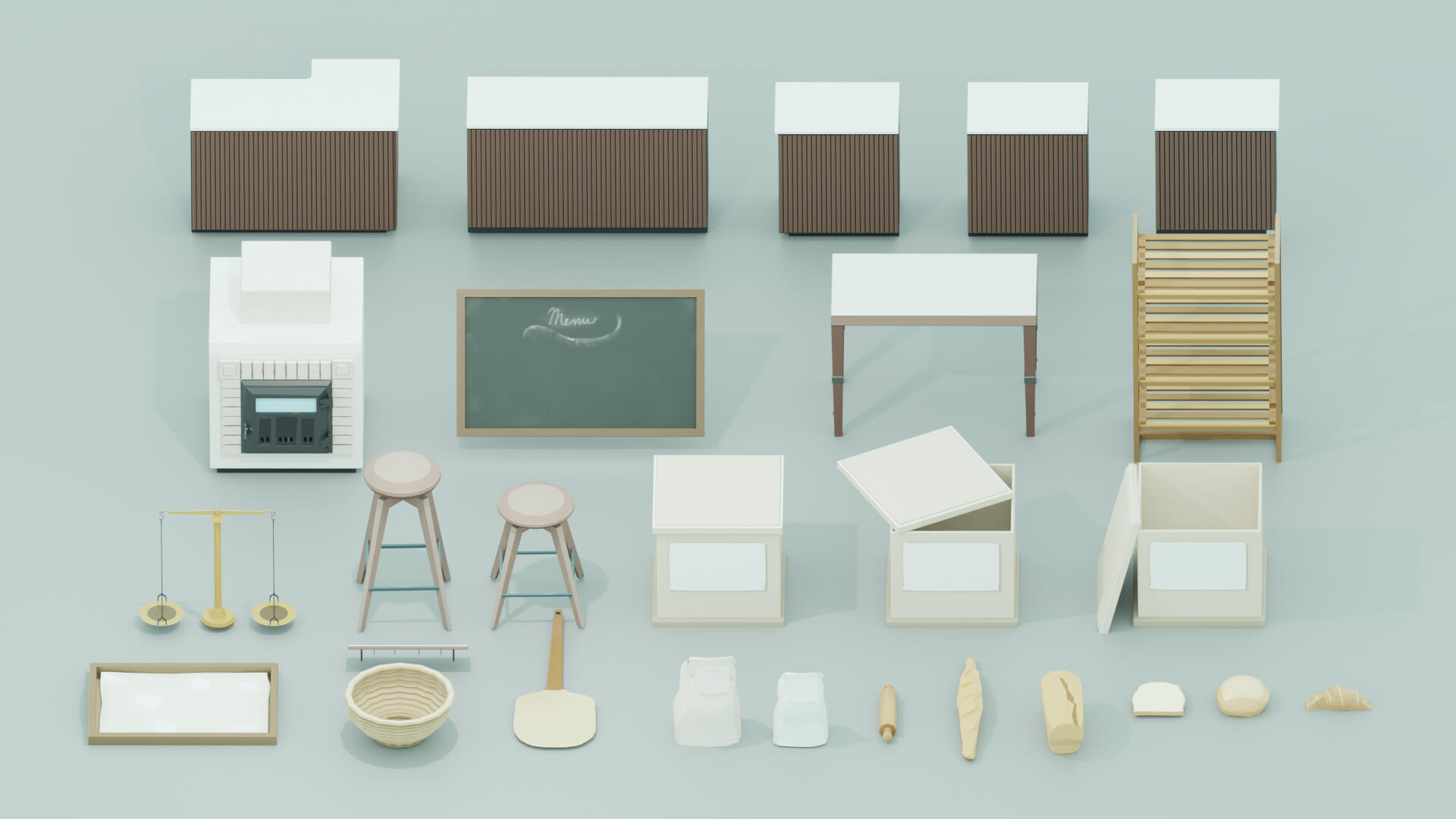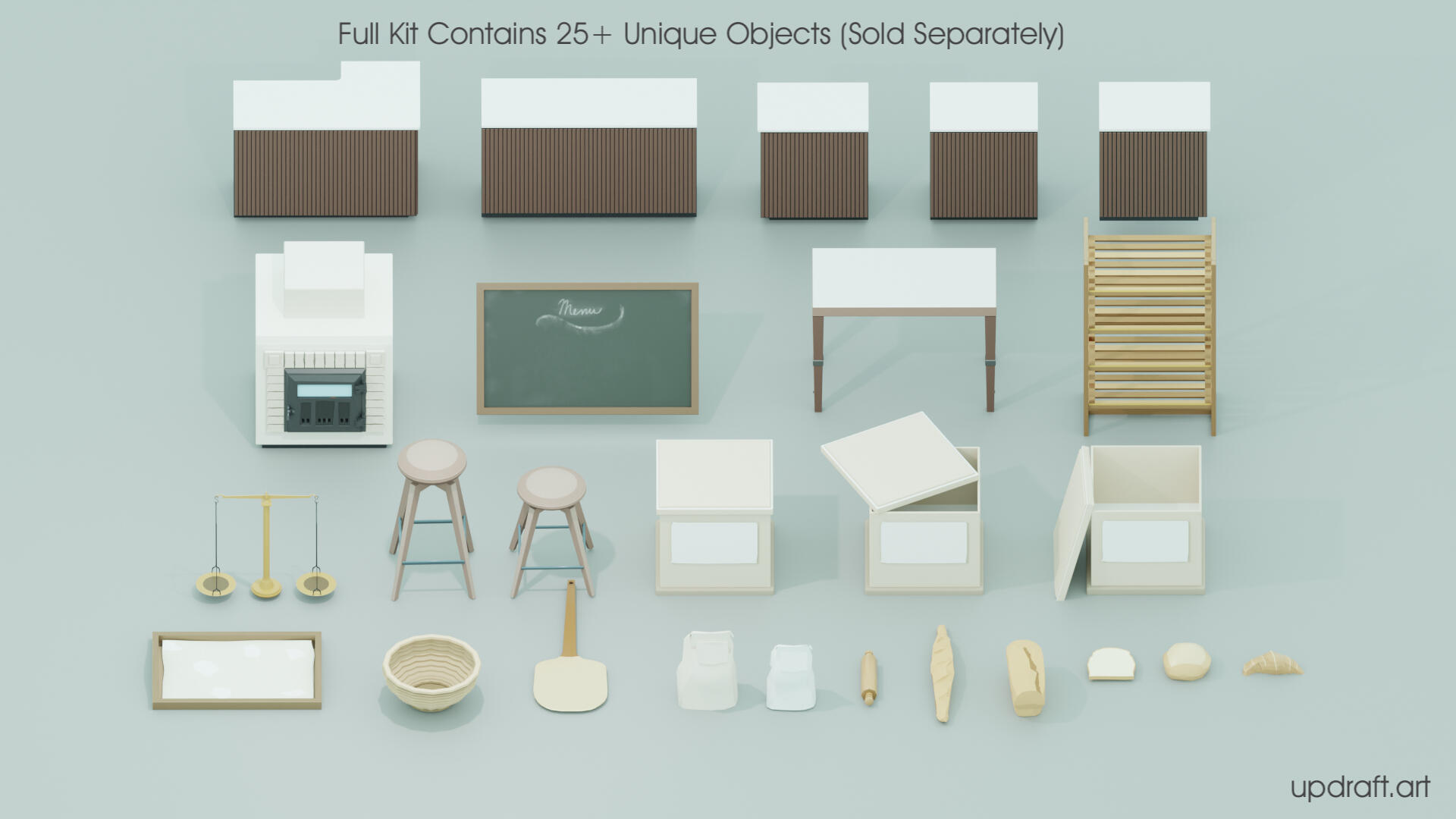 Test the Stylized Bakery Interior Kit for free. Get a 4-piece starter pack including counter, bread loaf, rolling pin, and chalkboard menu with decal. Enter your email to get the download link.